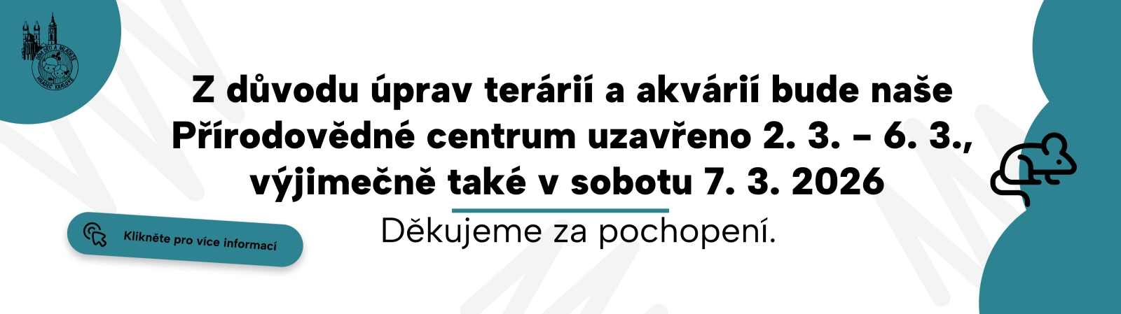 Noční prohlídka zvířat – zažijte přírodu jinak! Vstupte do jedinečné atmosféry, kdy se centrum ponoří do tmy a svět zvířat ožívá úplně novým způsobem. Během noční prohlídky vás provedeme mezi zvířaty, která jsou po setmění nejaktivnější, a odhalíme vám jejich tajemství, zvyky i způsob, jakým vnímají svět. Co vás čeká: - setkání s druhy, které ožívají po setmění - pozorování přirozeného chování zvířat v klidném prostředí - výklad a zajímavosti, které jinde neuslyšíte - neopakovatelná atmosféra šera, světýlek a nočních zvuků Pro koho je prohlídka vhodná? Pro rodiny s dětmi od 6 let, páry, milovníky zvířat i všechny, kteří touží zažít něco neobvyklého a magického. Přijďte objevit svět, který se probouzí, když ostatní usínají. Noční prohlídka vás vtáhne do tajemného života zvířat a nabídne zážitek, na který nezapomenete. Datum a čas konání? V sobotu 14.3.2026 od 19:00h do 21:30h. Na prohlídku je nutná rezervace předem na rezervační stránce. Přihlásit se