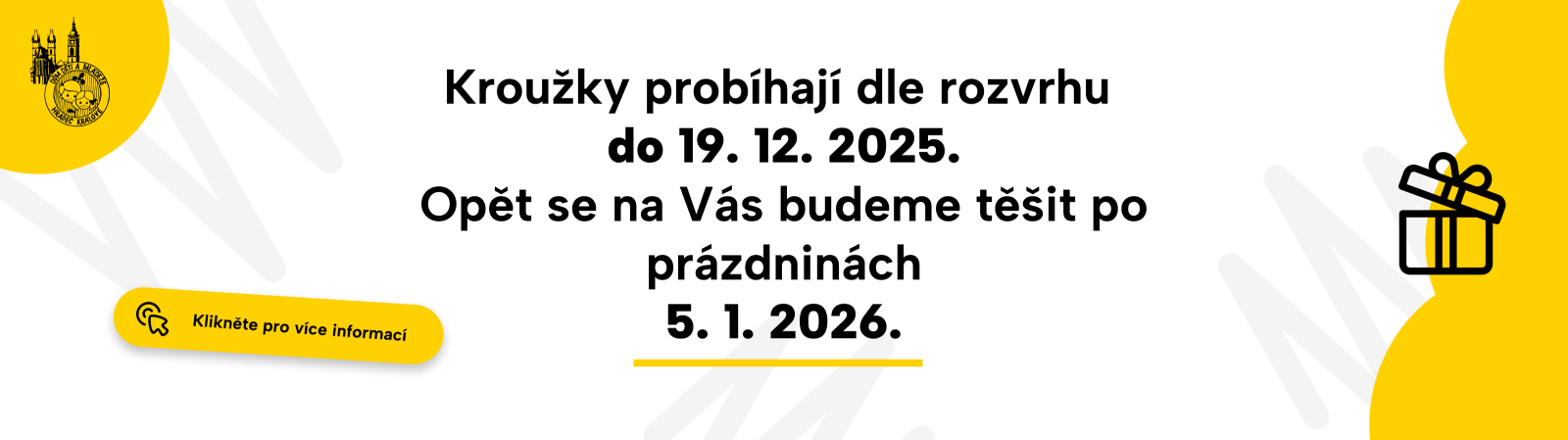 Rádi bychom vás informovali, že kroužky probíhají dle běžného rozvrhu do 19. 12. 2025.
