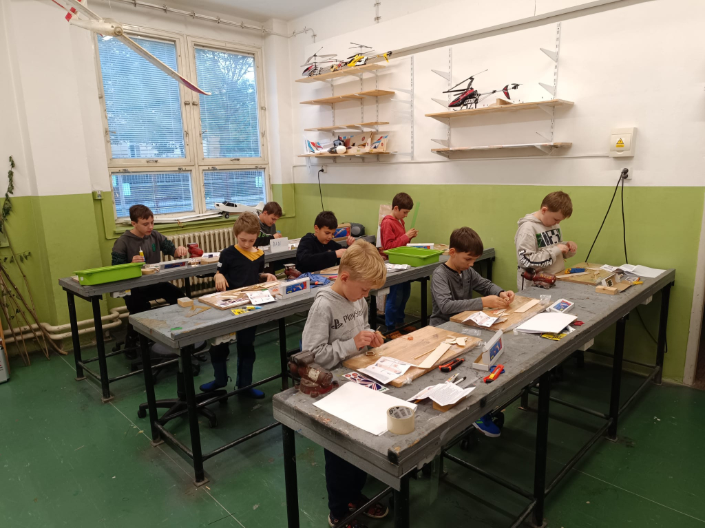 Devět nadšených kluků se už od prvních schůzek pustilo s chutí do práce a s obrovským zaujetím staví své první i pokročilejší modely. V dílně to žije – piluje se, lepí, brousí, barví a hlavně se společně objevuje radost z tvoření.